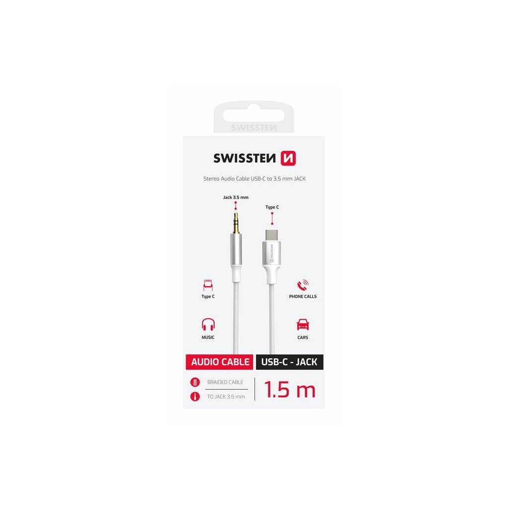 Audio adaptér Swissten Textile USB-C / 3,5 mm Jack 1,5 m – bílý