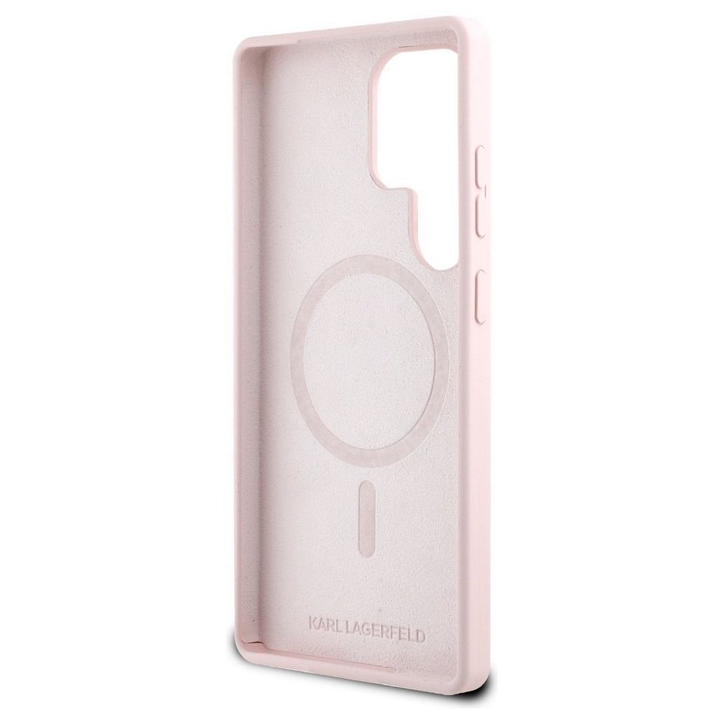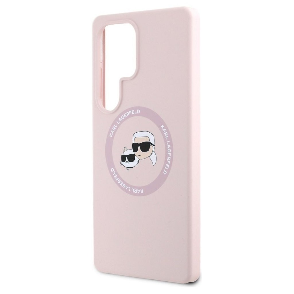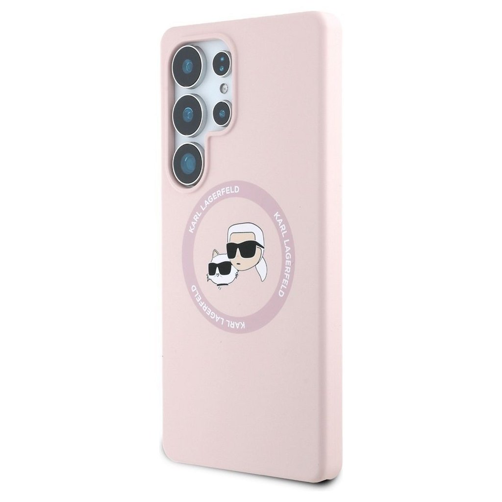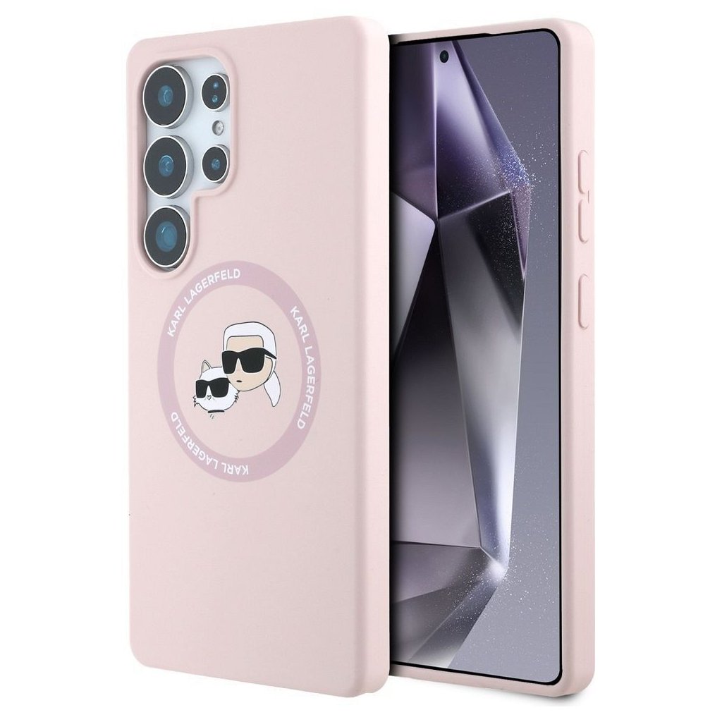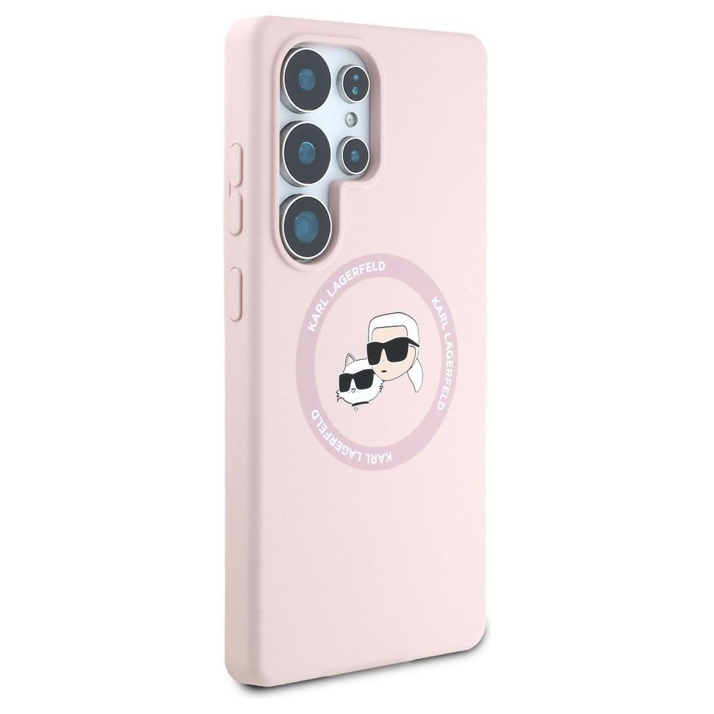 Karl Lagerfeld magnetické silikonové pouzdro s dvojitou hlavou pro Samsung S25 Ultra – růžové