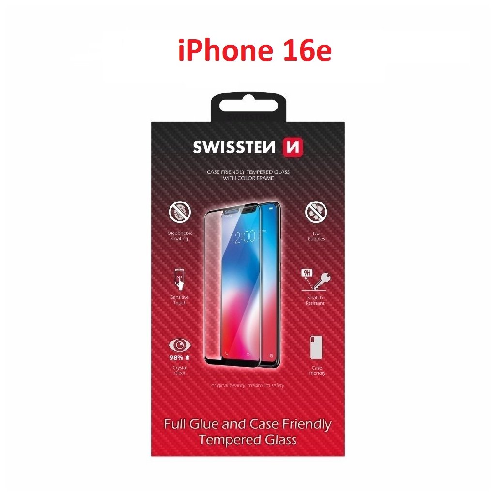 Ochranné sklo Swissten Full Glue Case Friendly Pro pro Apple iPhone 16e – černé