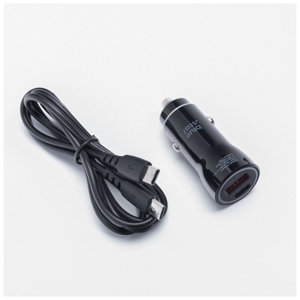 25W nabíječka do auta Blue Star (PD, QC 3.0, AFC, PPS) s konektorem USB C a 60W kabelem USB C-C