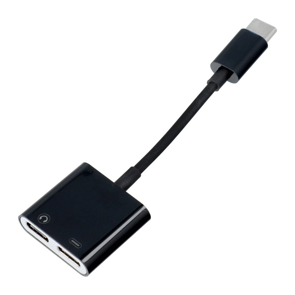 AUX adaptér 2v1 Typ C (samec) na Typ C (samice) / Typ C (samice) BULK černý [DAC].