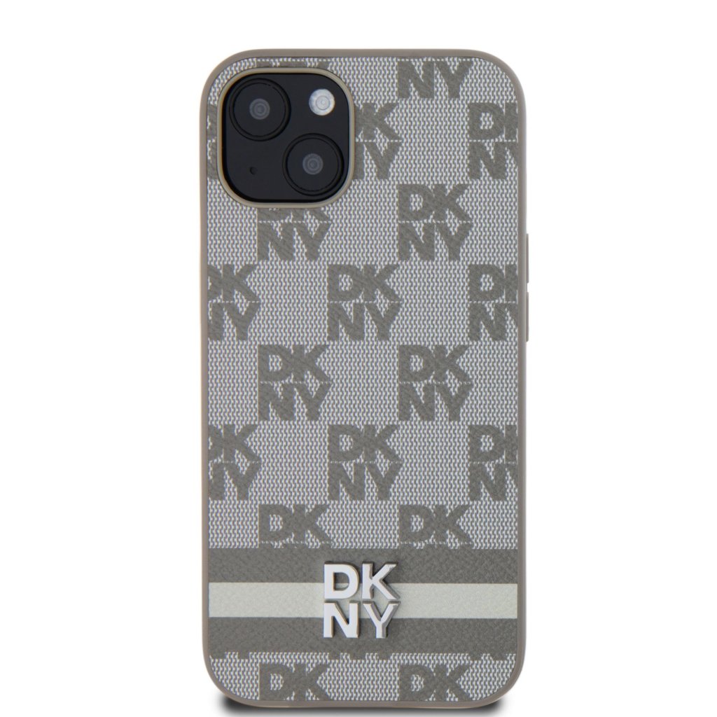 DKNY PU Leather Checkered Pattern and Stripe Zadní Kryt pro iPhone 13 Beige