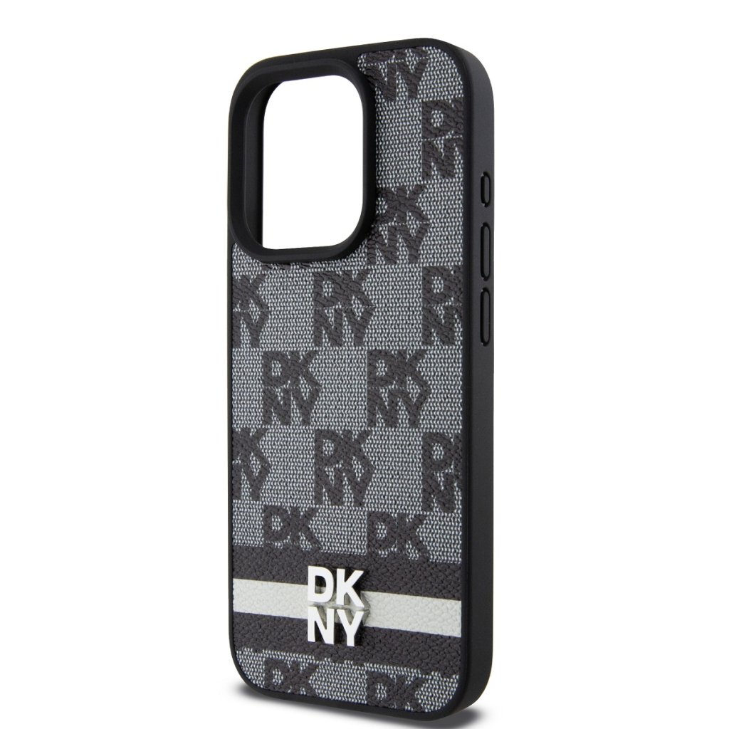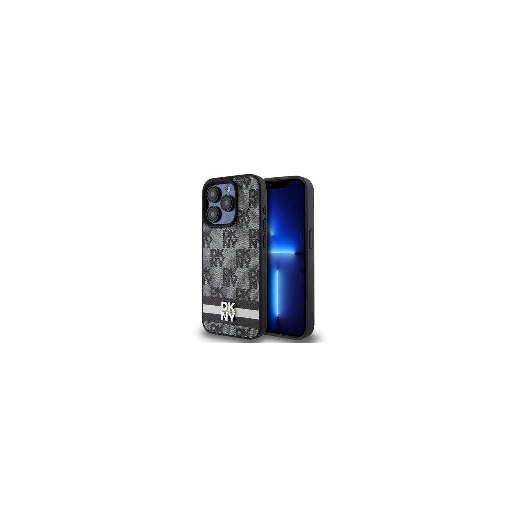 DKNY PU Leather Checkered Pattern and Stripe Zadní Kryt pro iPhone 13 Pro Max Black