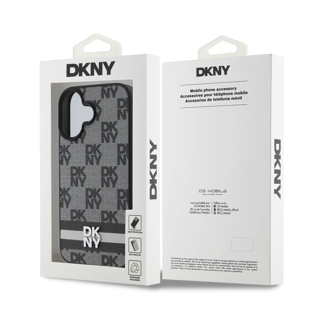 DKNY PU Leather Checkered Pattern and Stripe Zadní Kryt pro iPhone 16 Black
