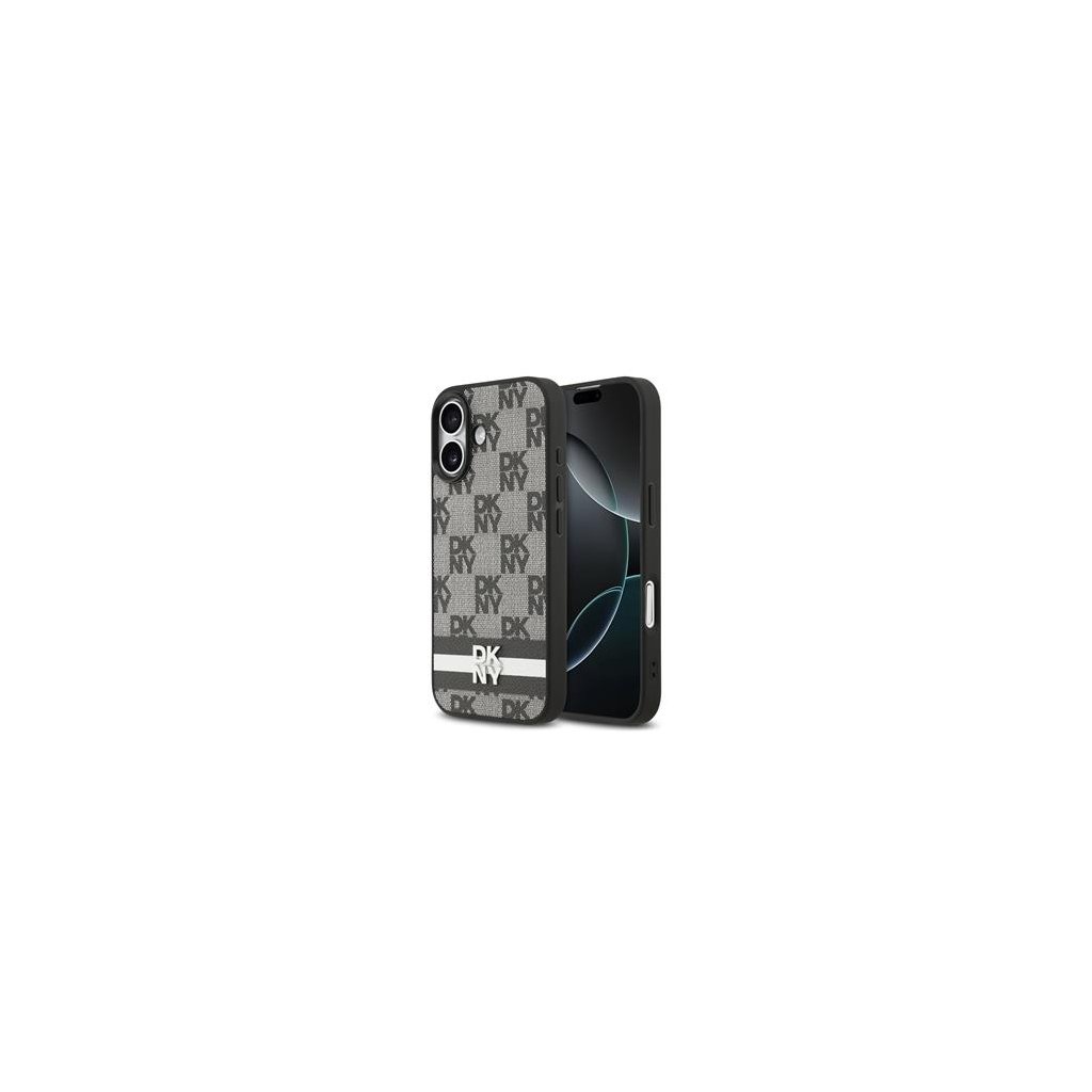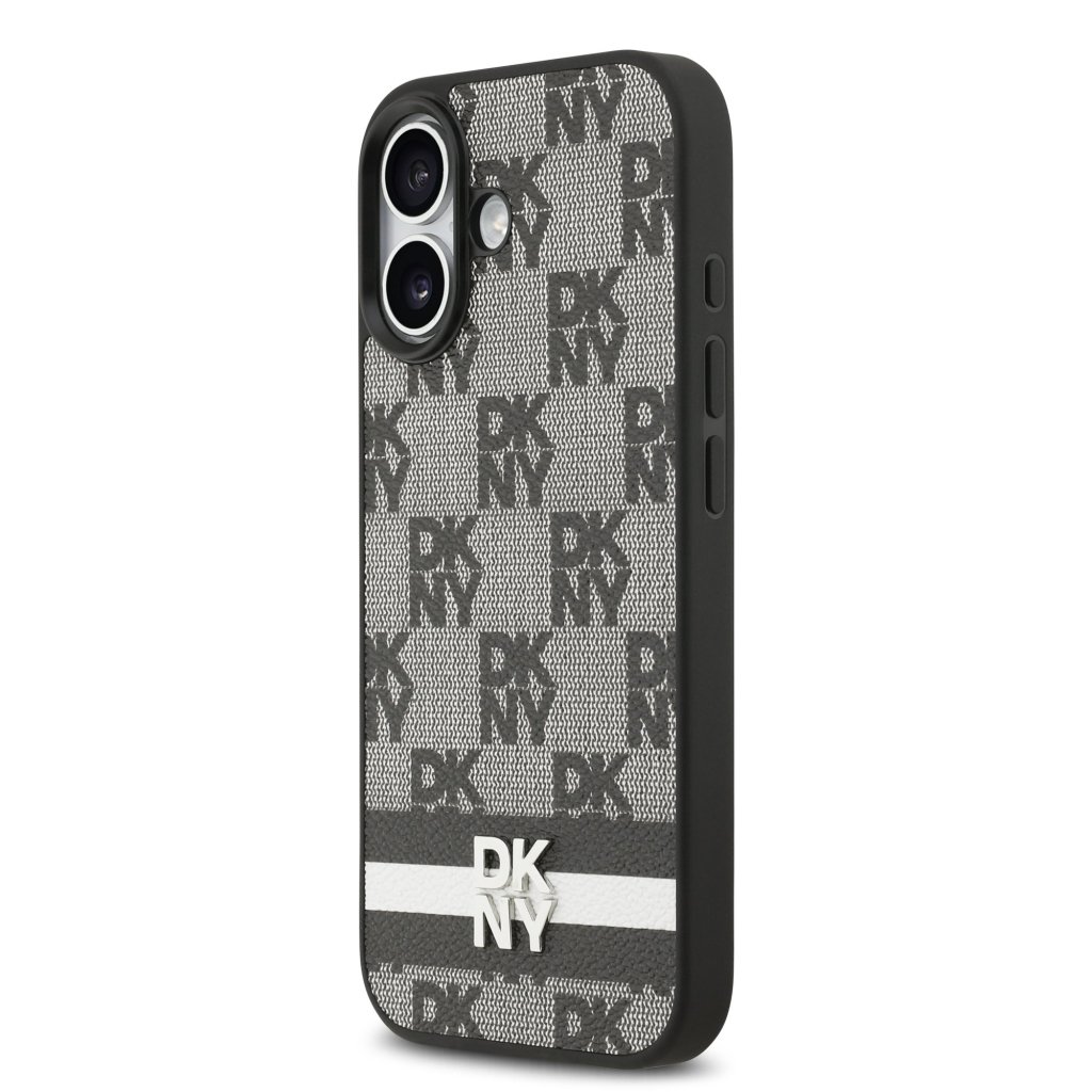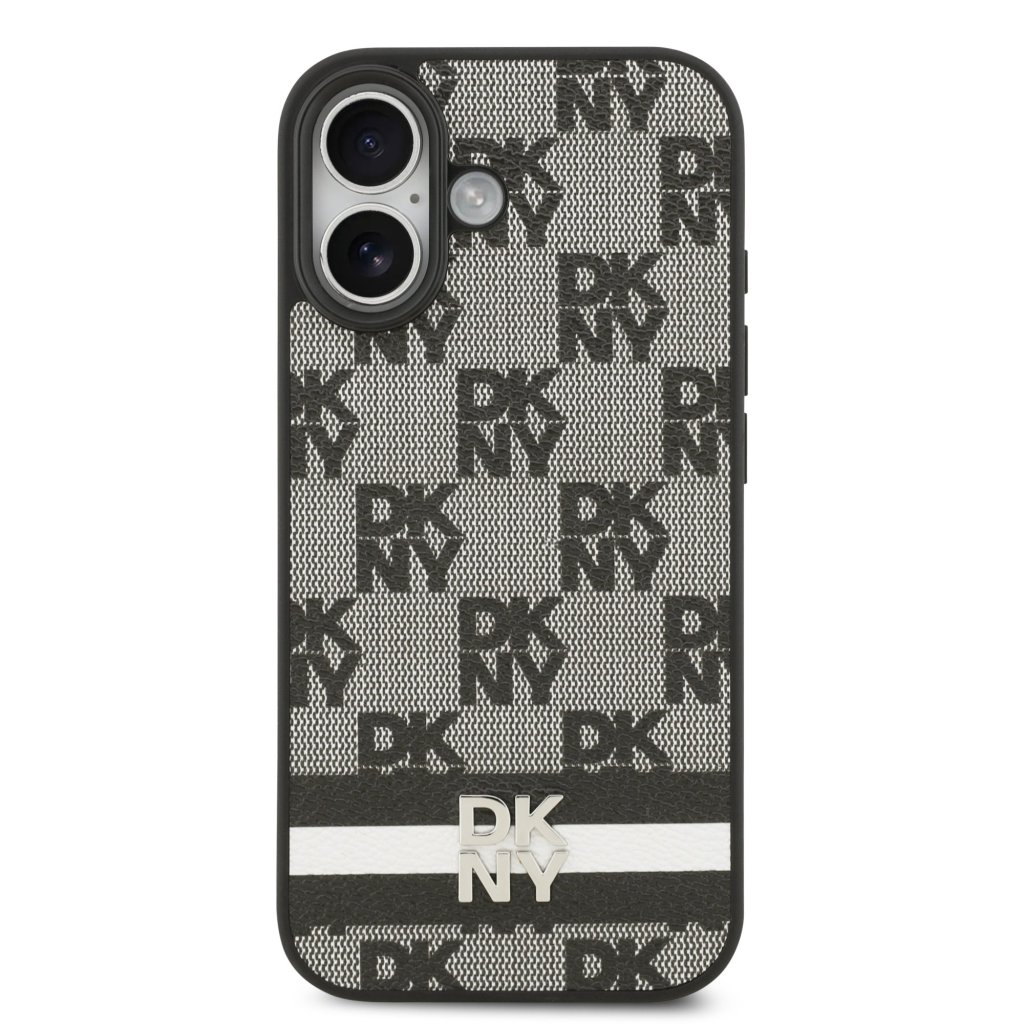 DKNY PU Leather Checkered Pattern and Stripe Zadní Kryt pro iPhone 17 Black