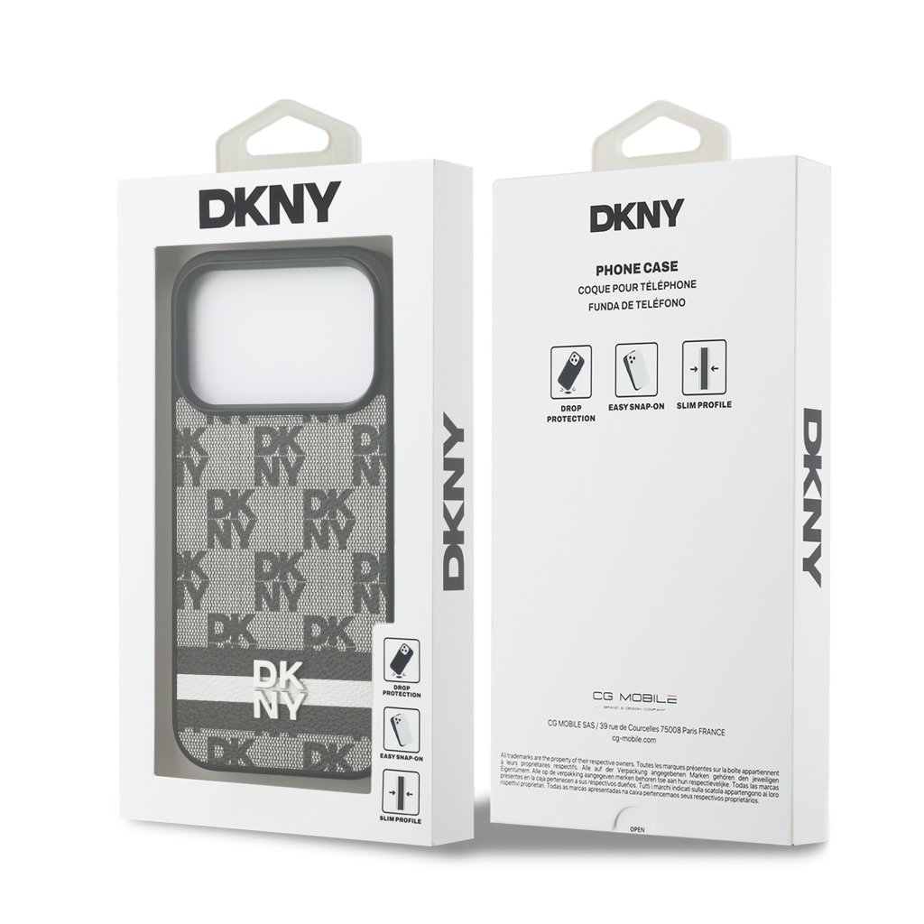 DKNY PU Leather Checkered Pattern and Stripe Zadní Kryt pro iPhone 17 Pro Black