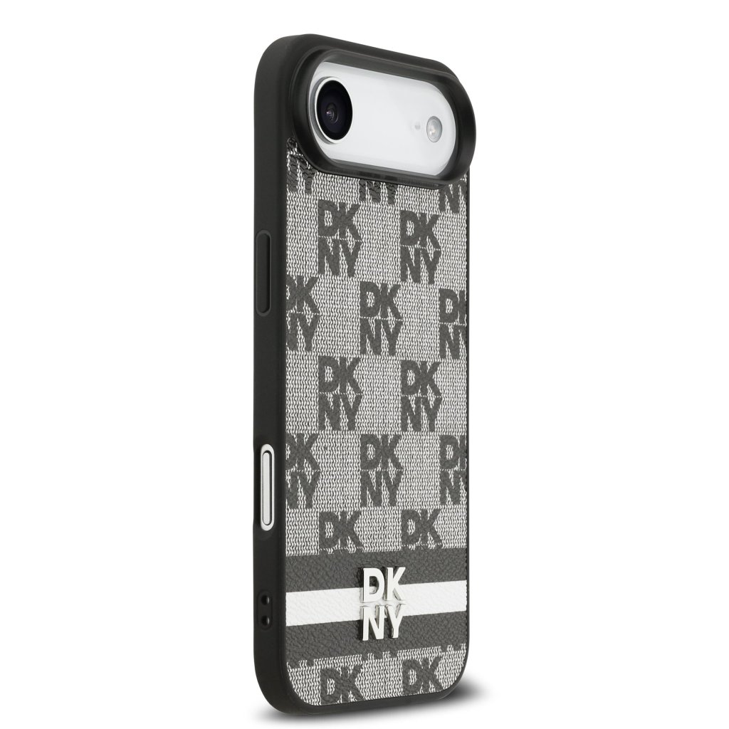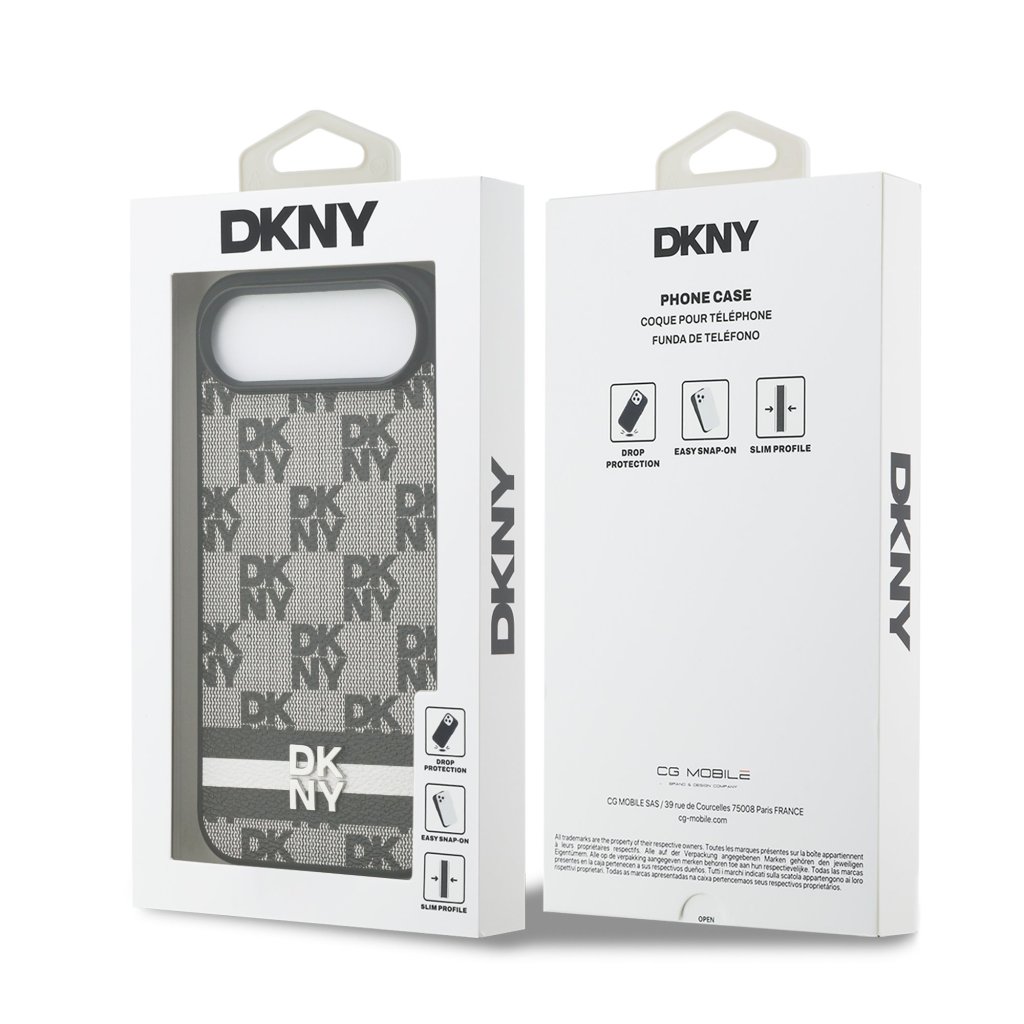 DKNY PU Leather Checkered Pattern and Stripe Zadní Kryt pro iPhone Air Black
