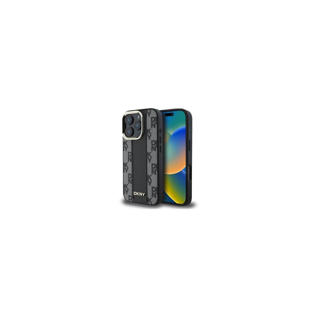DKNY PU Leather Checkered Pattern Magsafe Zadní Kryt pro iPhone 16 Pro Black