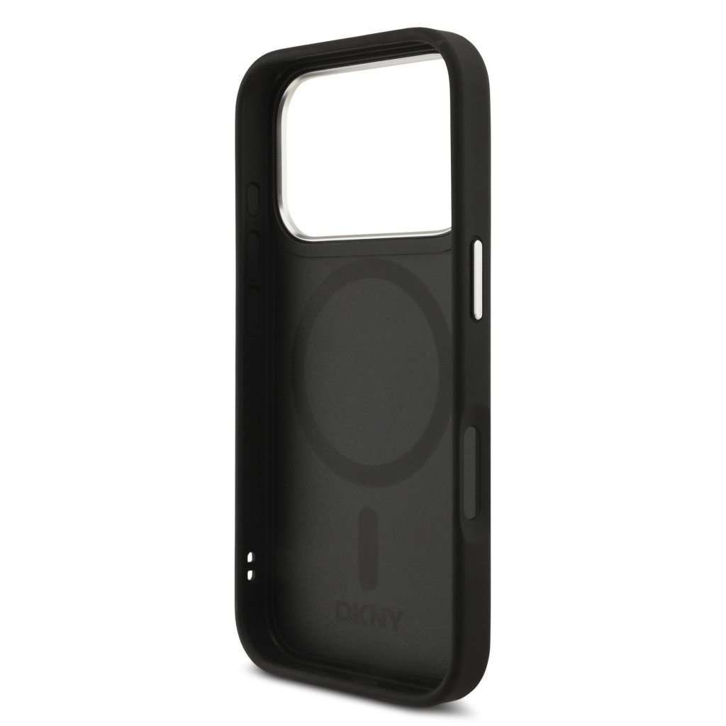 DKNY PU Leather Metal Logo Wrist Chain MagSafe Zadní Kryt pro iPhone 17 Pro Black