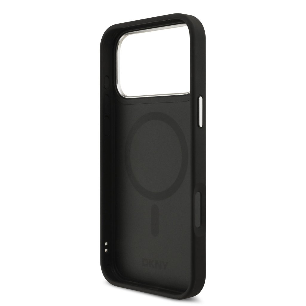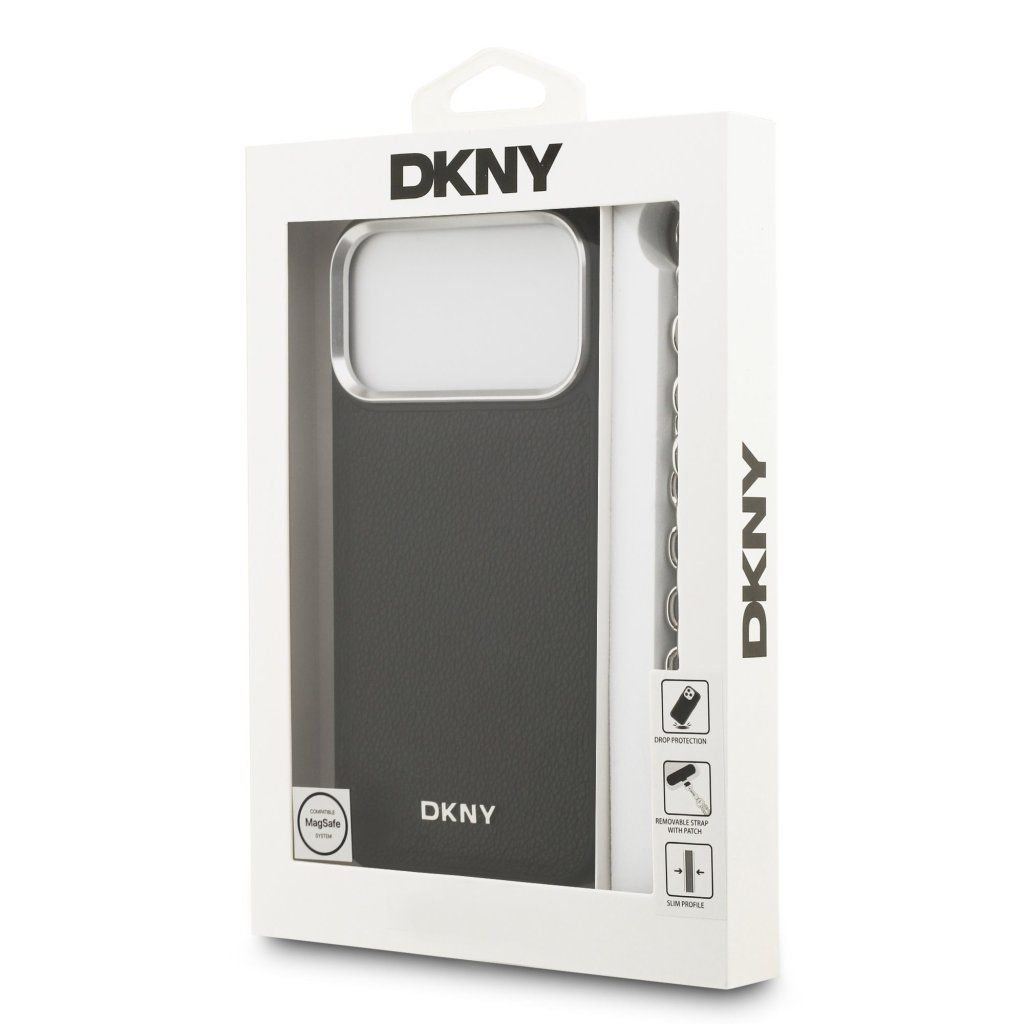 DKNY PU Leather Metal Logo Wrist Chain MagSafe Zadní Kryt pro iPhone 17 Pro Max Black