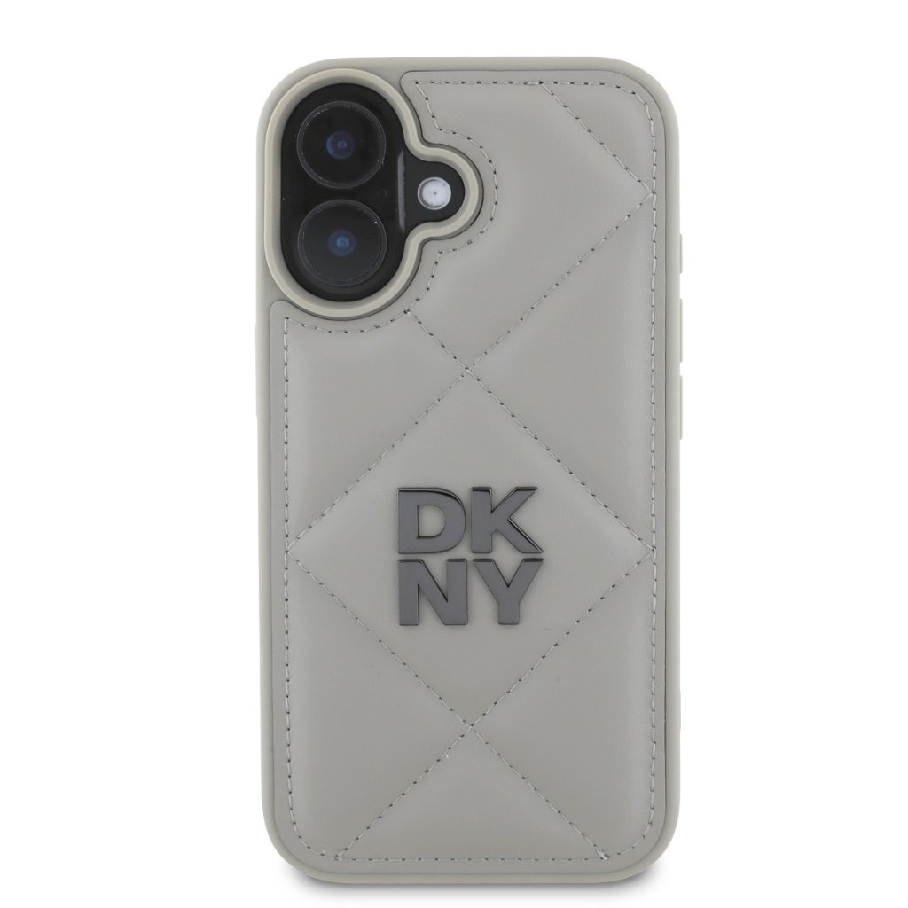DKNY PU Leather Quilted Stack Logo Zadní Kryt pro iPhone 16 Grey