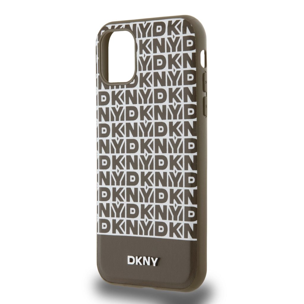 DKNY PU Leather Repeat Pattern Bottom Stripe MagSafe Zadní Kryt pro iPhone 11 Brown