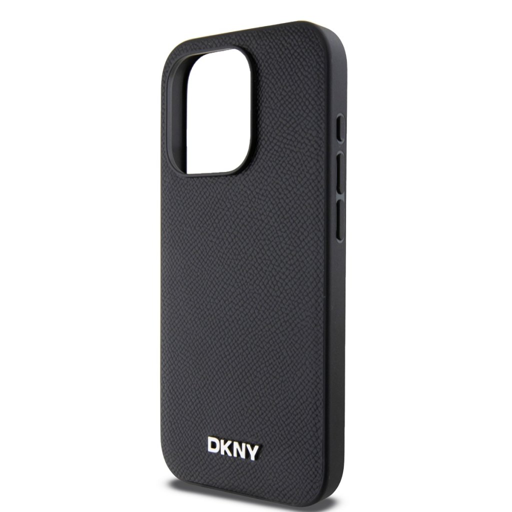 DKNY PU Leather Silver Metal Logo Magsafe Zadní Kryt pro iPhone 15 Pro Max Black