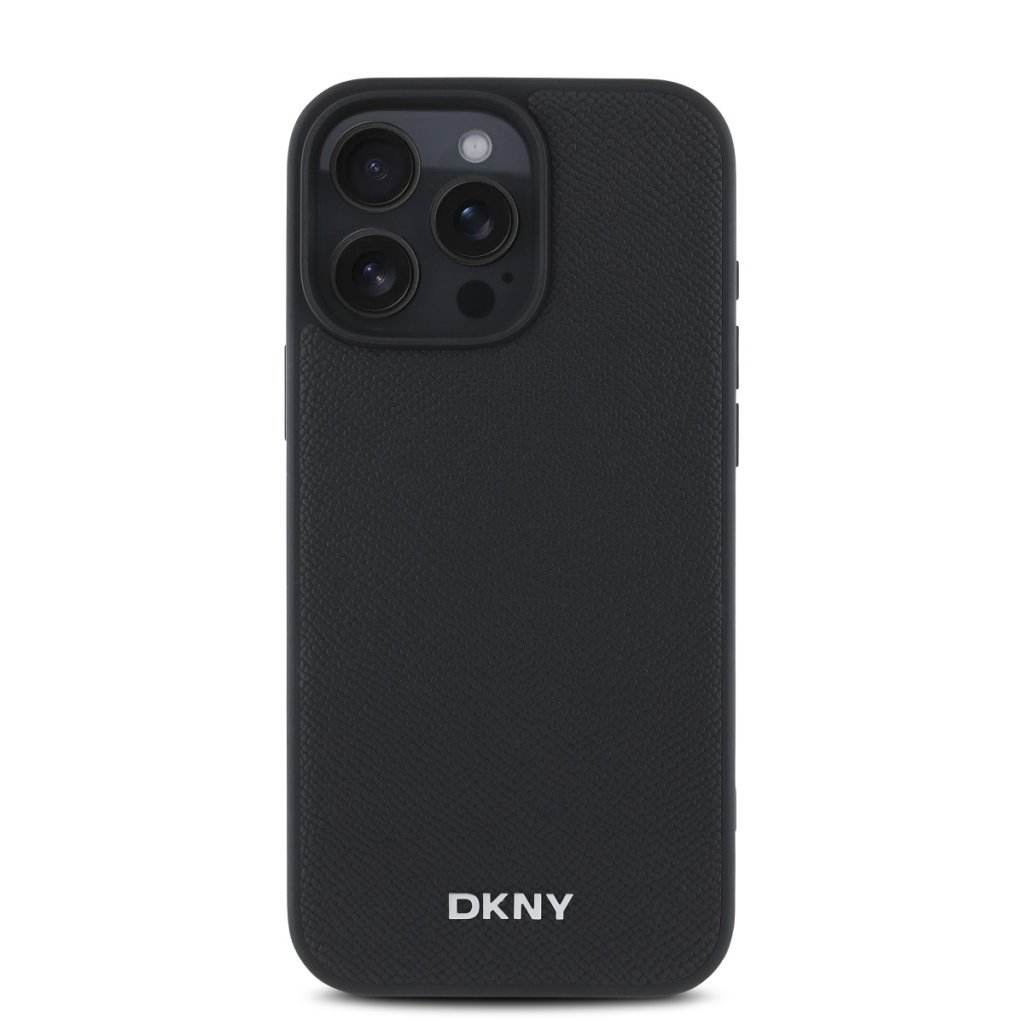 DKNY PU Leather Silver Metal Logo Magsafe Zadní Kryt pro iPhone 16 Pro Max Black