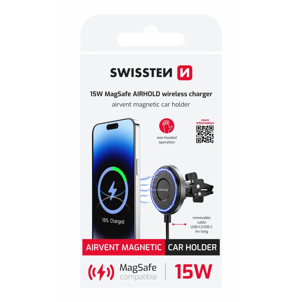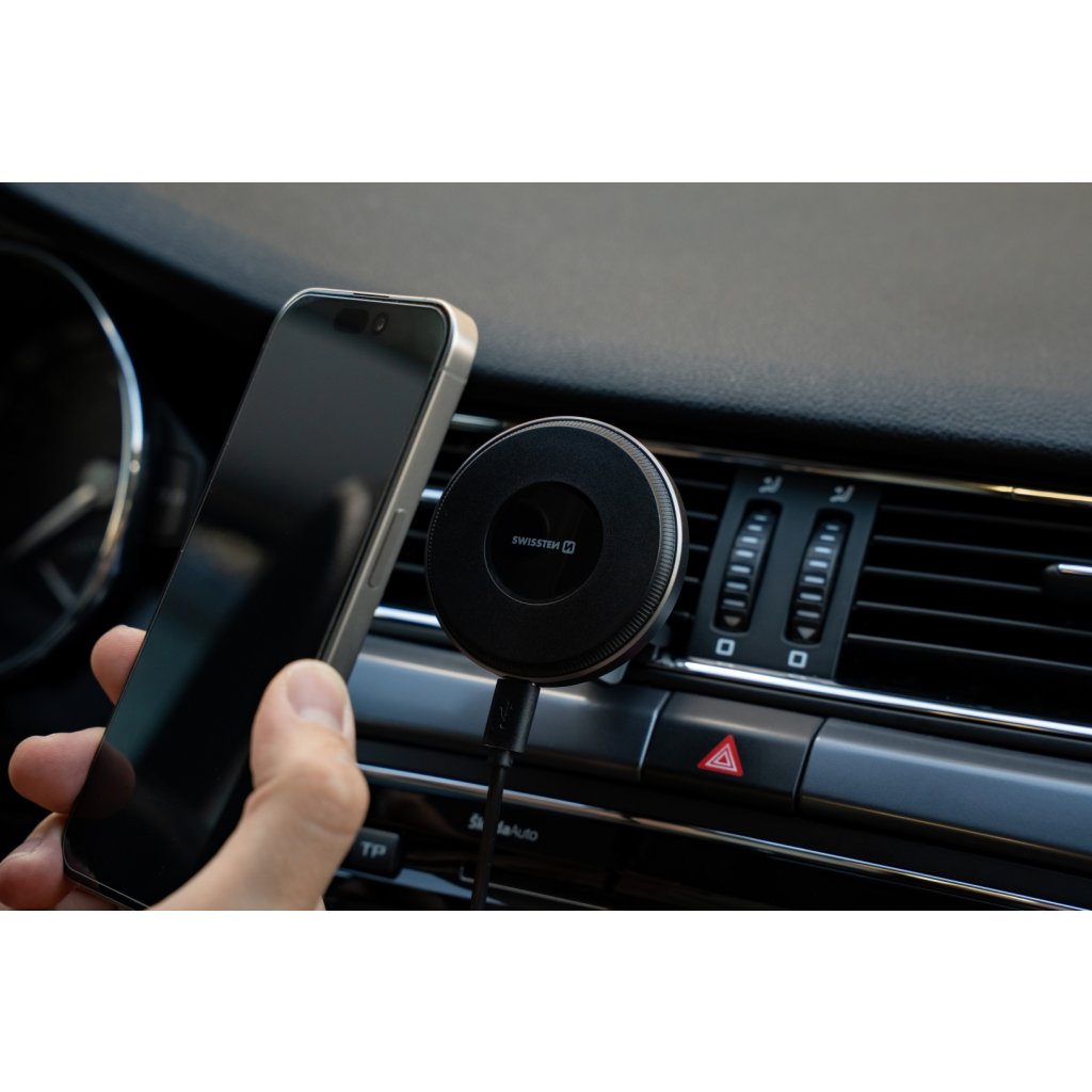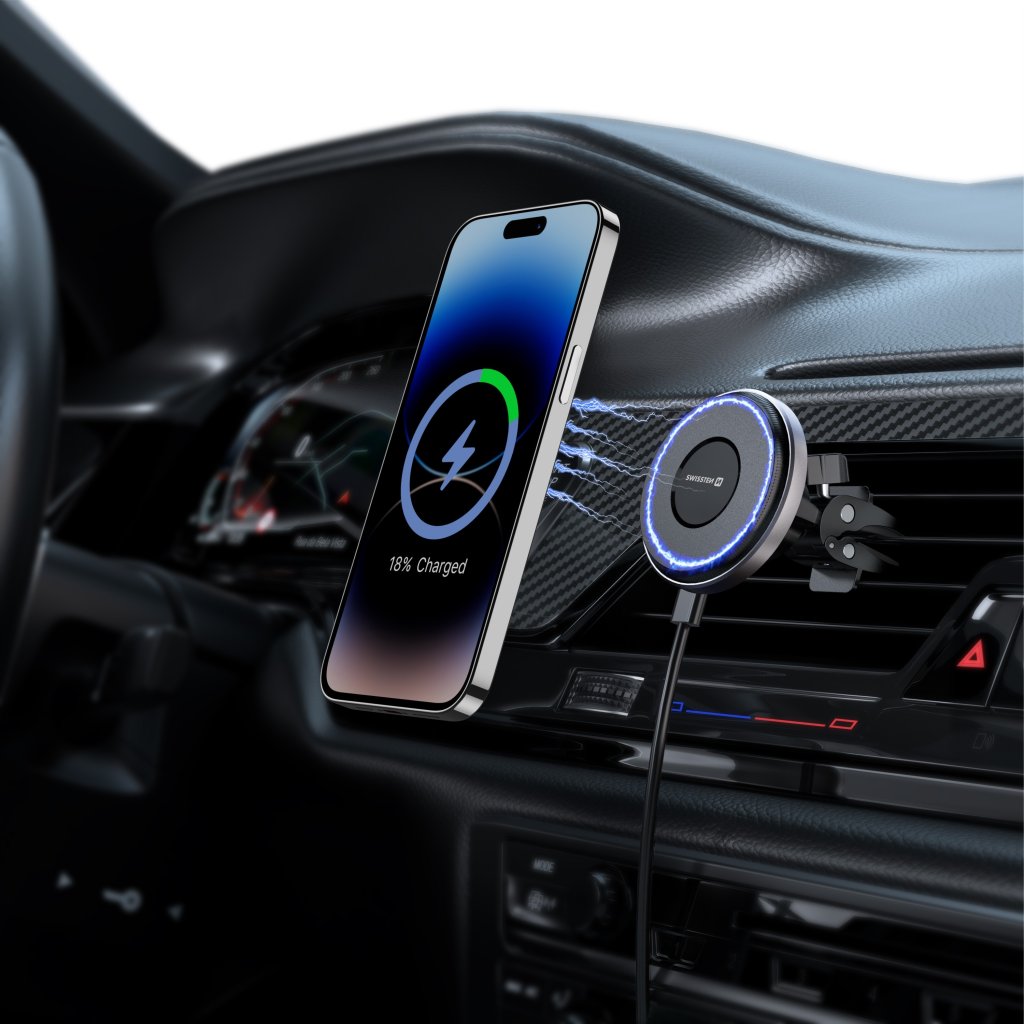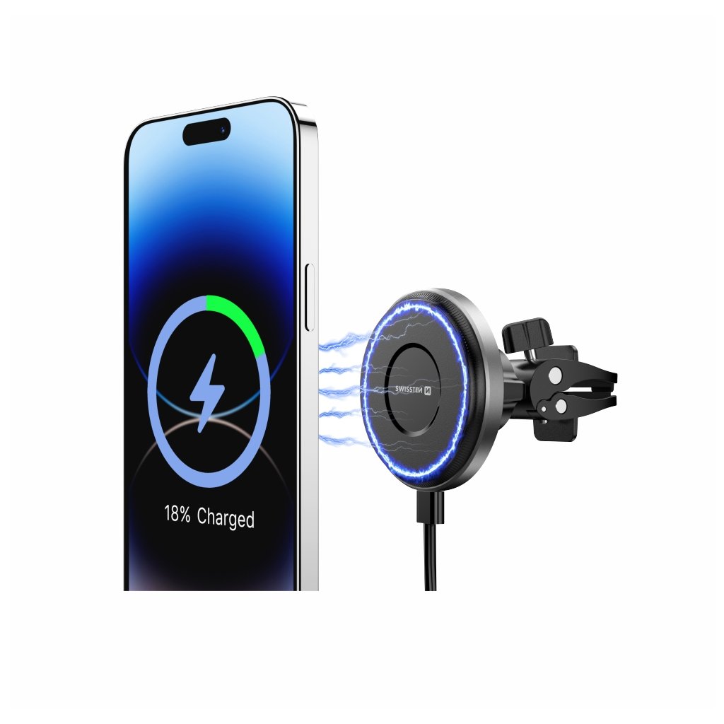 Magnetický držák do ventilace auta Swissten AirHold s bezdrátovým nabíjením 15 W / 7,5 W – MagSafe kompatibilní
