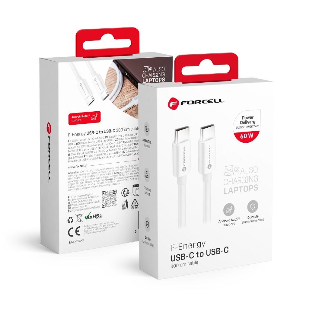 FORCELL F-ENERGY C338 kabel typ C na typ C PD QC4.0 3A 60W 3 m bílý