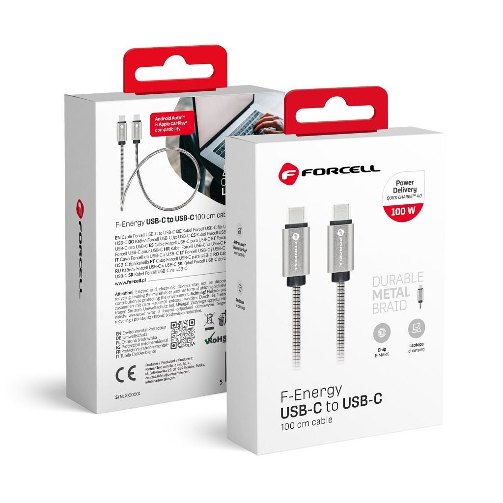 FORCELL F-ENERGY Metal C239 kabel Type C na Type C PD QC4.0 5A 100W E-Mark 1 m stříbrný