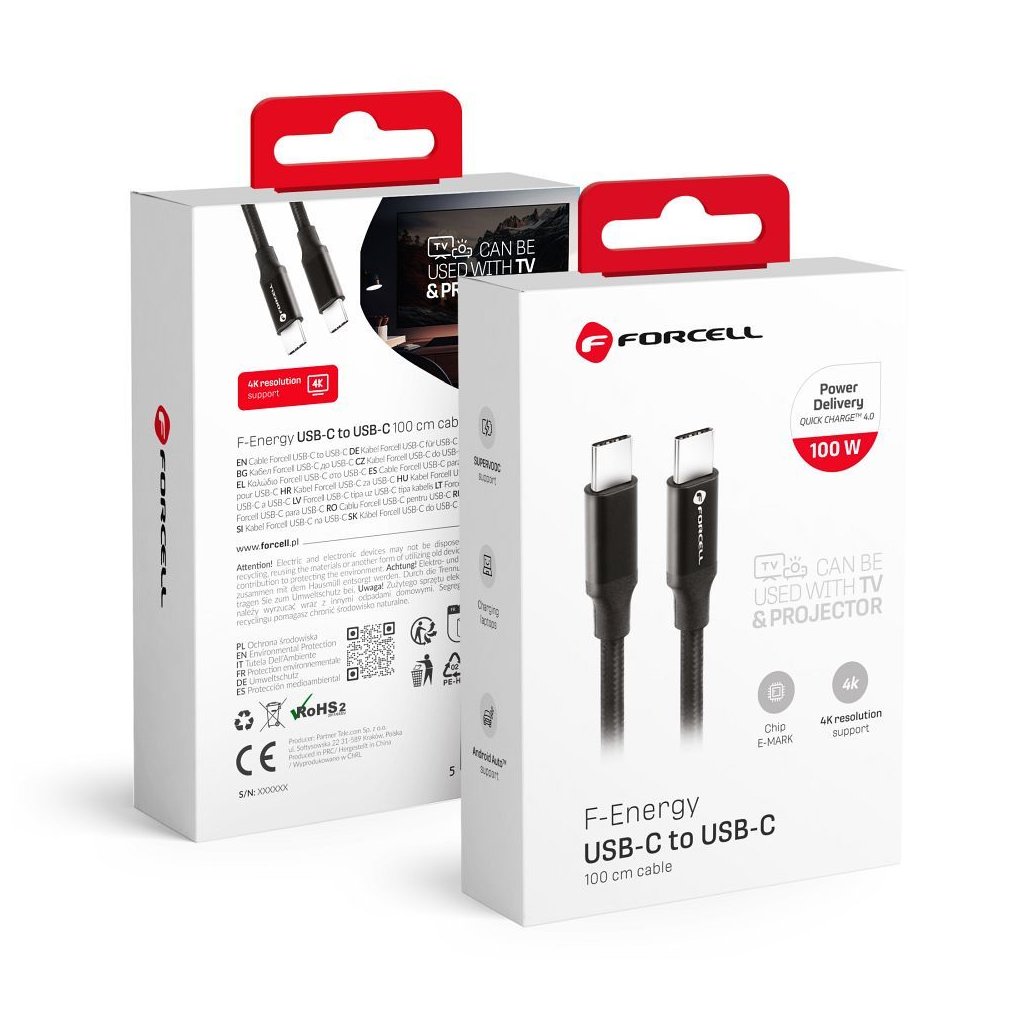 FORCELL kabel Typ C na Typ C QC4.0 5A/20V PD100W E-mark / 4K / Thunderbolt / 20Gbit/s C391 1m černý