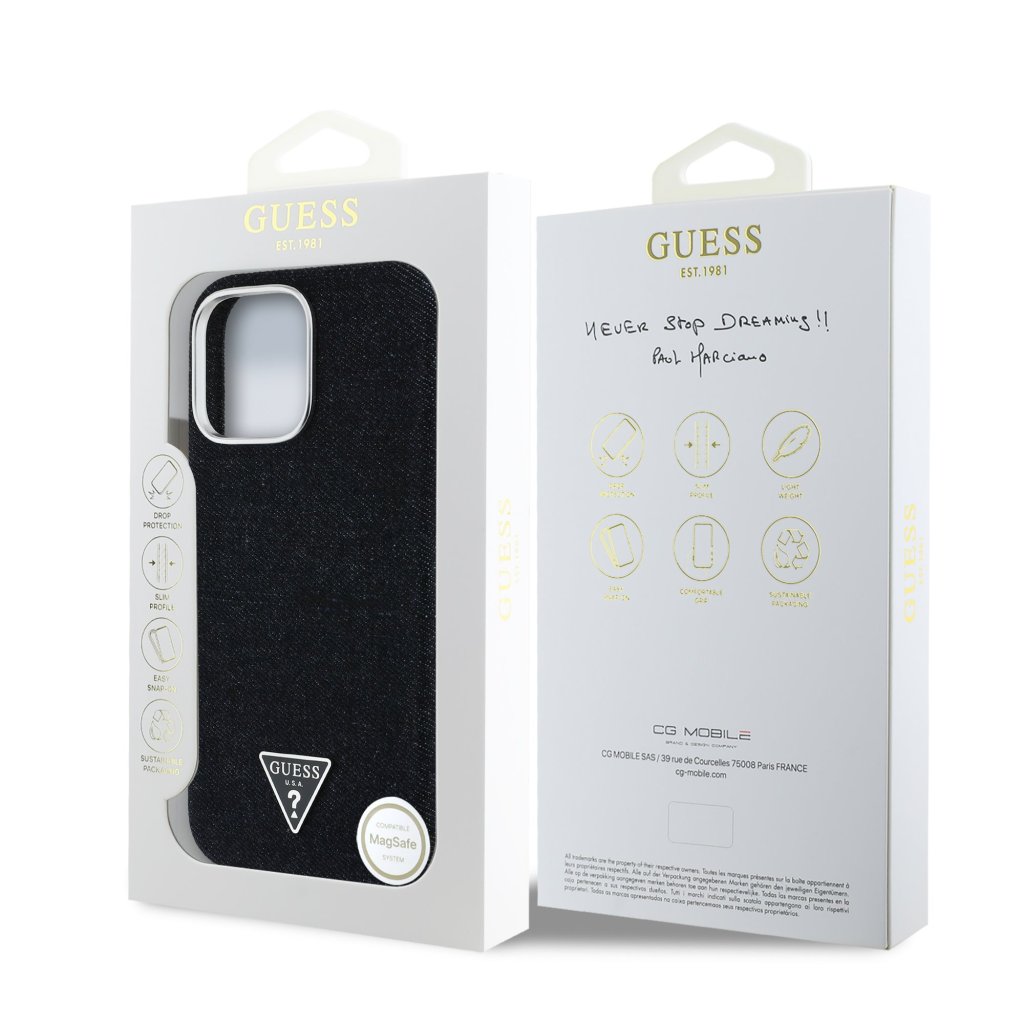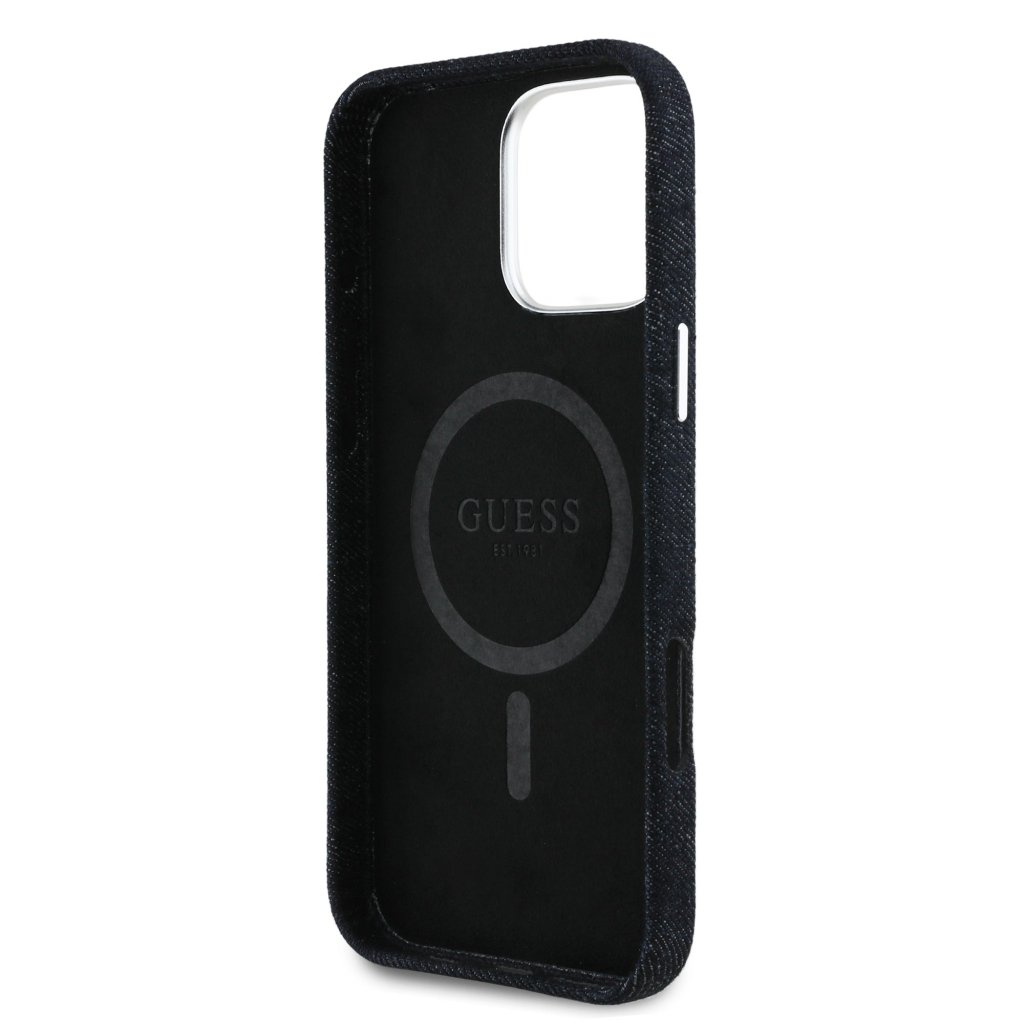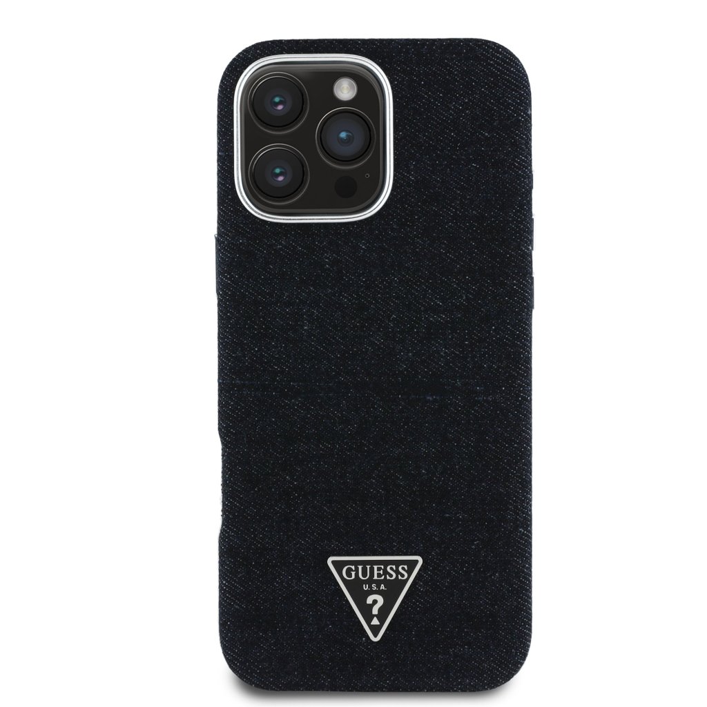 Guess Denim Triangle Logo MagSafe Zadní Kryt pro iPhone 16 Pro Black