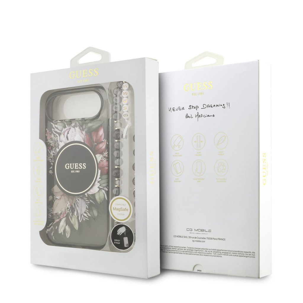Guess IML Flowers Strap MagSafe Zadní Kryt pro iPhone Air Black