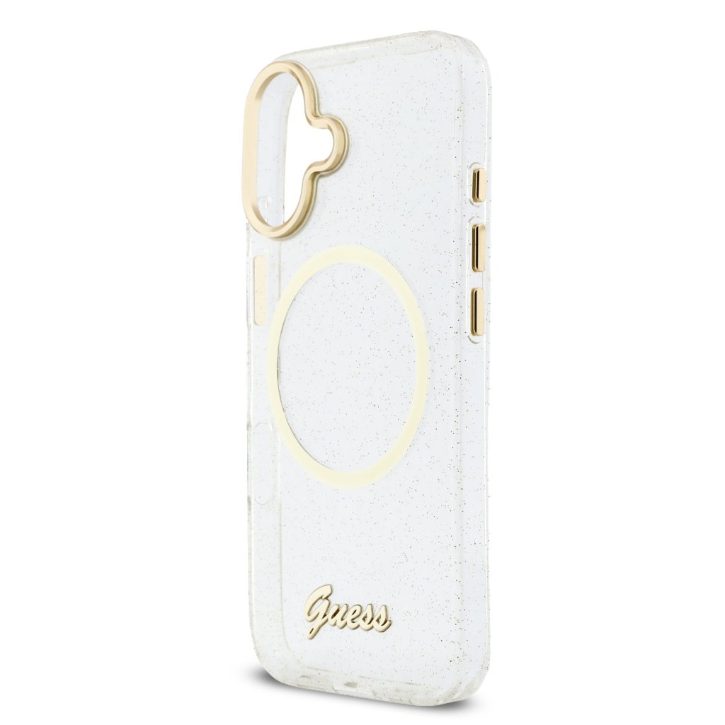 Guess IML Glitter Script Strap MagSafe Zadní Kryt pro iPhone 17 Transparent
