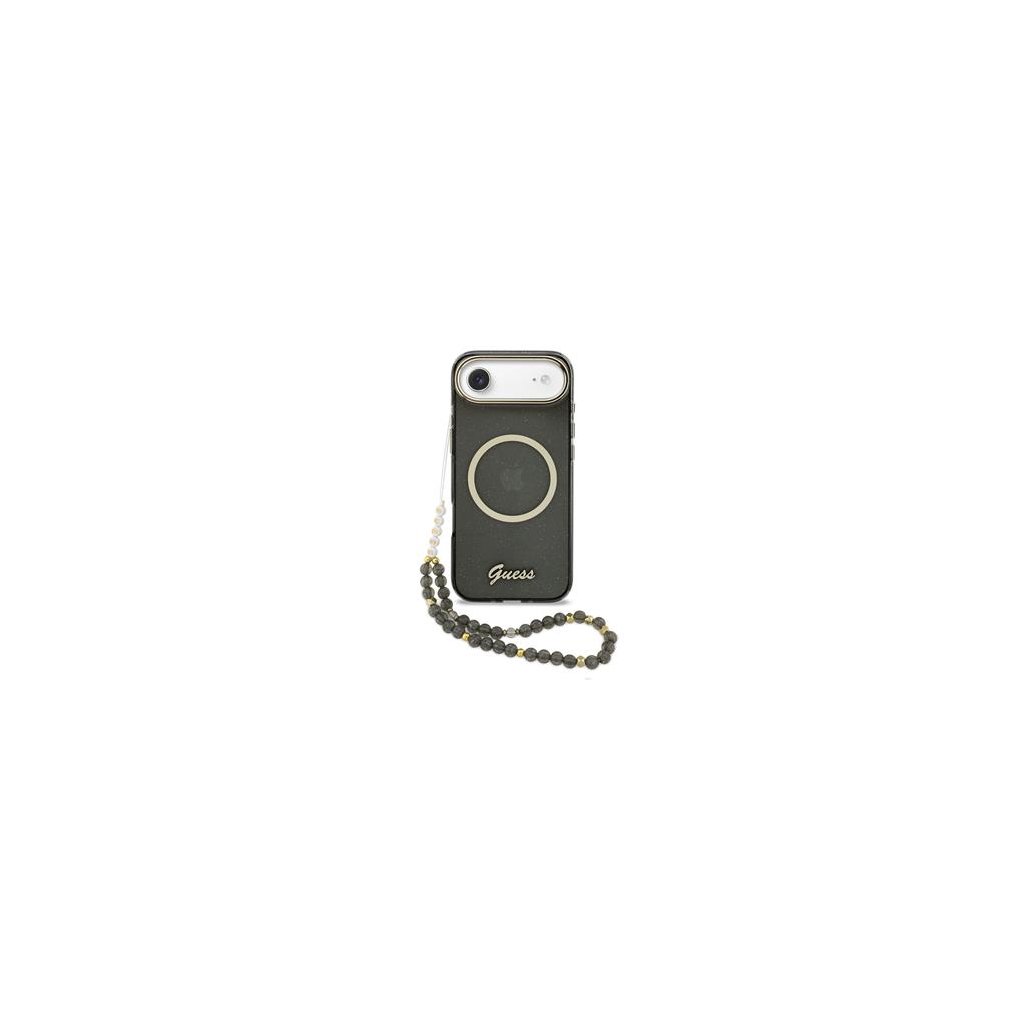 Guess IML Glitter Script Strap MagSafe Zadní Kryt pro iPhone Air Black