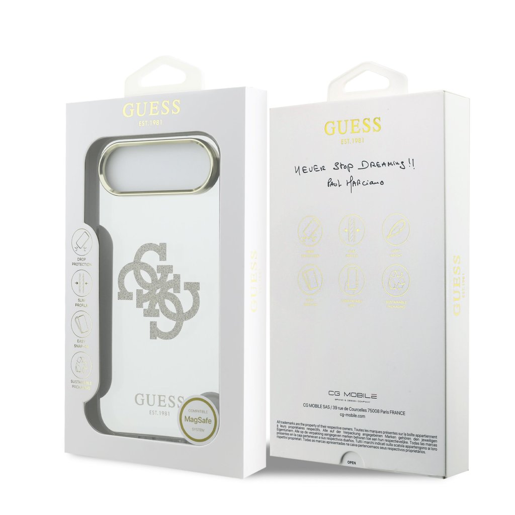 Guess PC/TPU Mirror 4G Glitter Logo MagSafe Zadní Kryt pro iPhone Air Gold