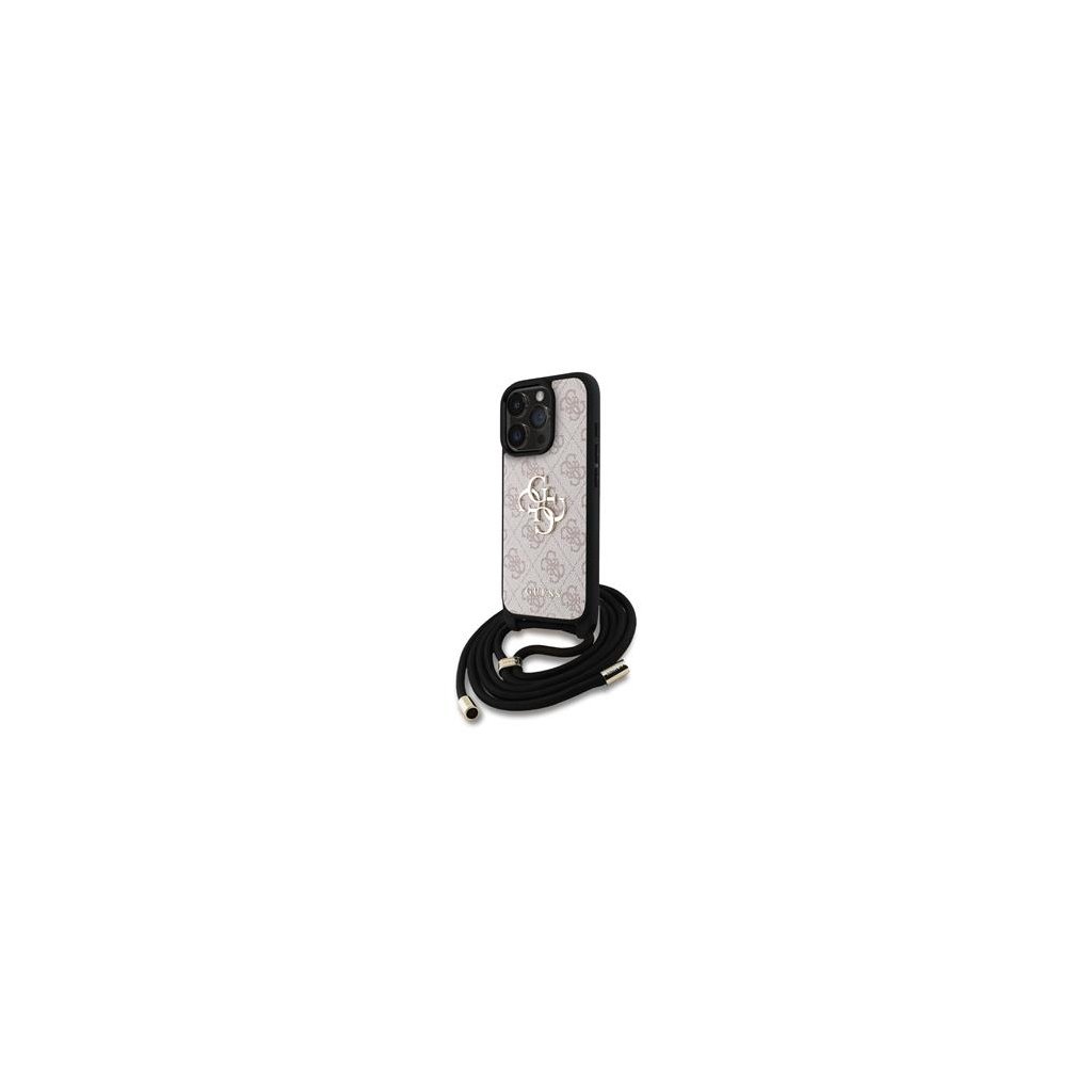 Guess PU 4G Metal Logo Crossbody Popruh Zadní Kryt pro iPhone 16 Pro Pink