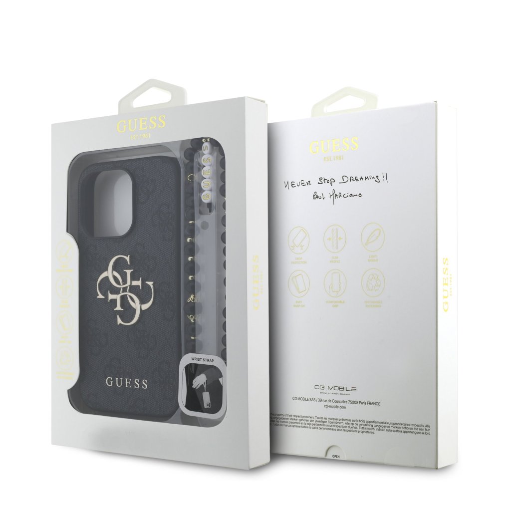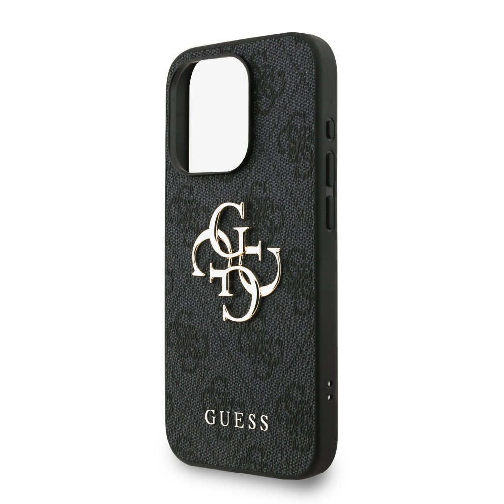 Guess PU 4G Metal Logo Strap Zadní Kryt pro iPhone 15 Pro Black