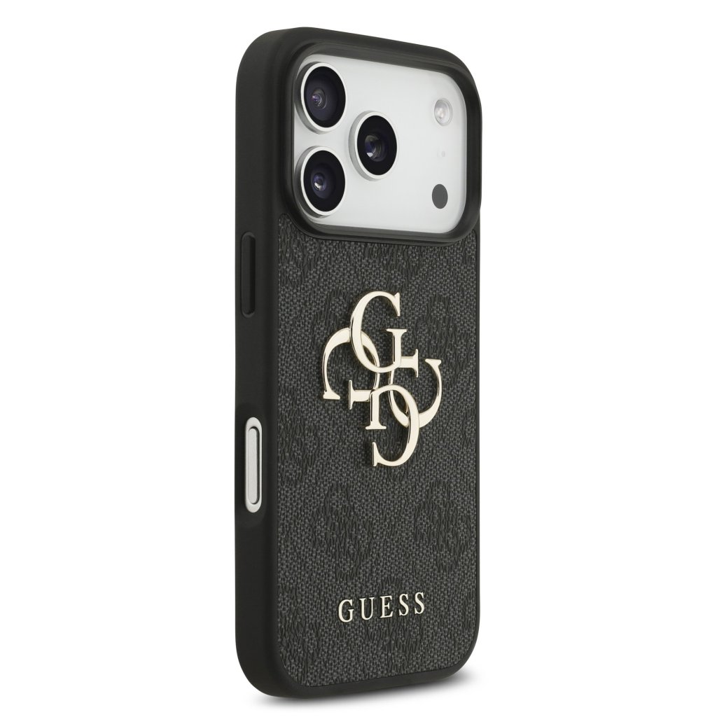 Guess PU 4G Metal Logo Strap Zadní Kryt pro iPhone 17 Pro Black