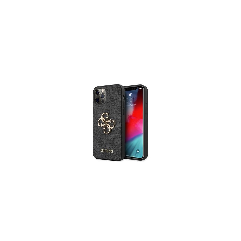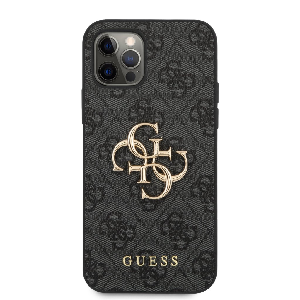 Guess PU 4G Metal Logo Zadní Kryt pro iPhone 12 Pro Max Grey