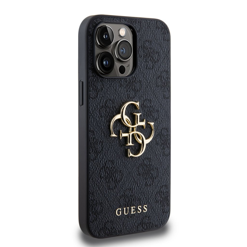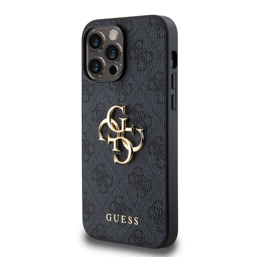 Guess PU 4G Metal Logo Zadní Kryt pro iPhone 14 Pro Max Grey