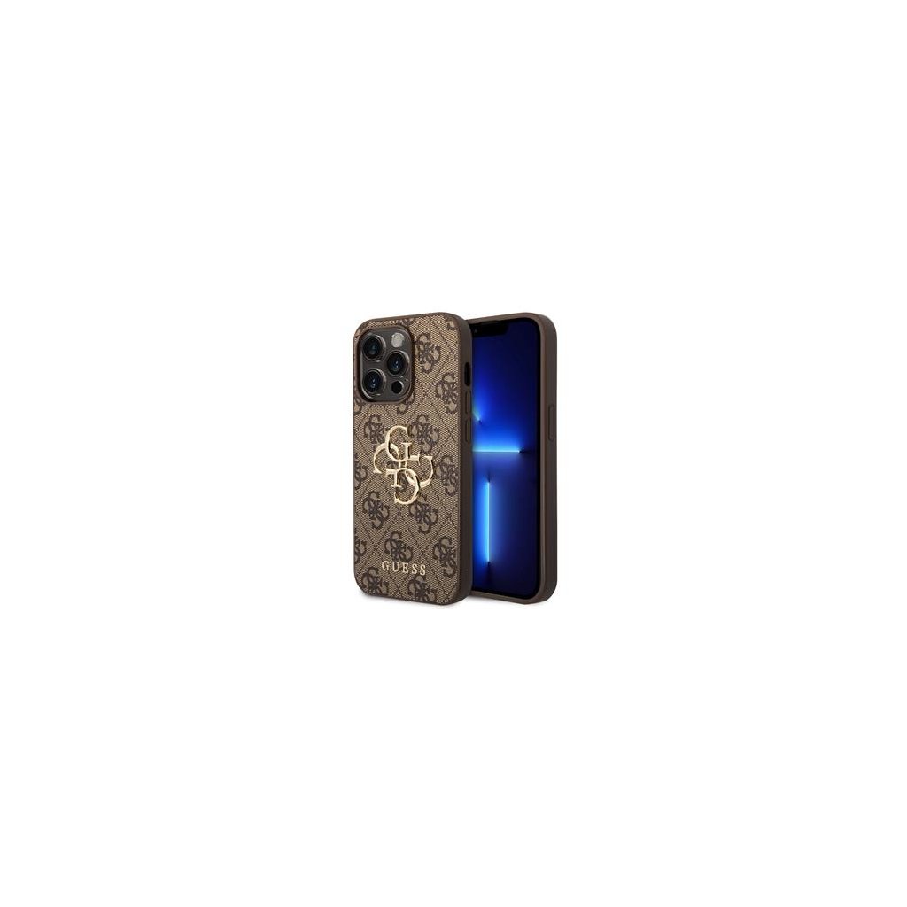 Guess PU 4G Metal Logo Zadní Kryt pro iPhone 15 Pro Max Brown