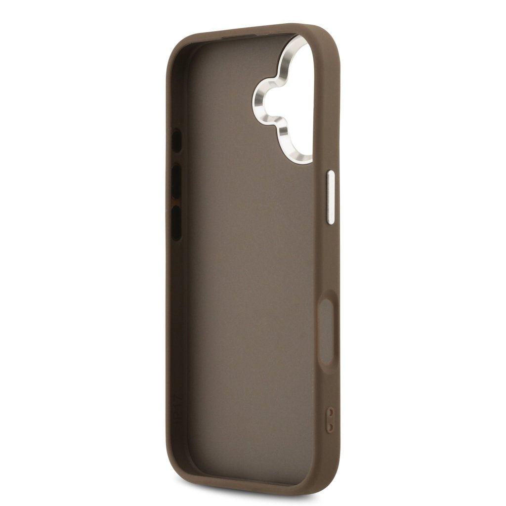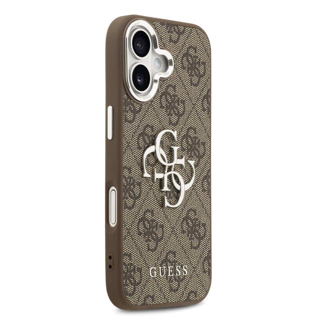 Guess PU 4G Metal Logo Zadní Kryt pro iPhone 17 Silver Brown