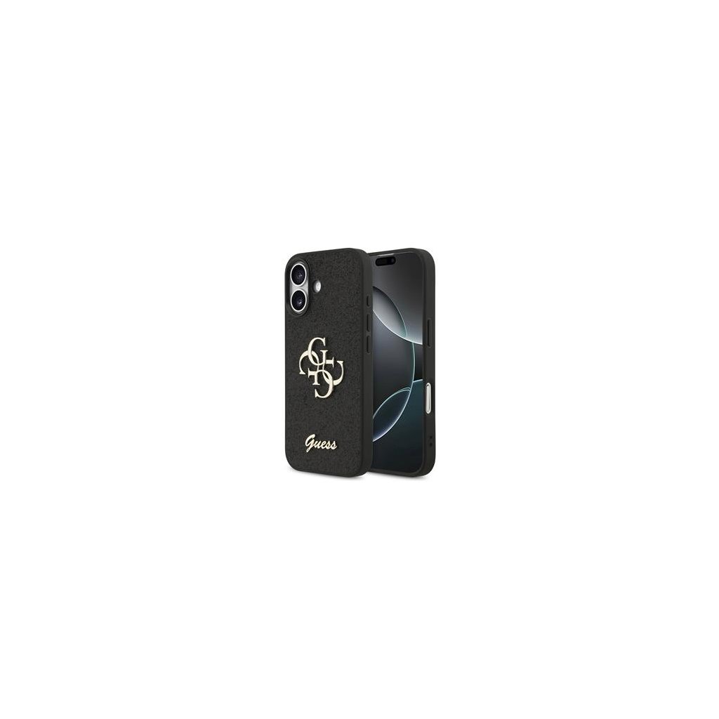 Guess PU Fixed Glitter 4G Metal Logo Zadní Kryt pro iPhone 17 Black