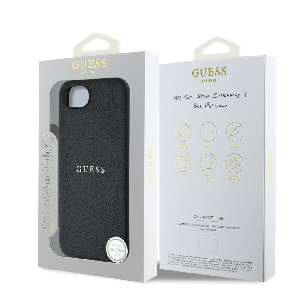 Guess PU Grained Classic Logo MagSafe Zadní Kryt pro iPhone 16e Black