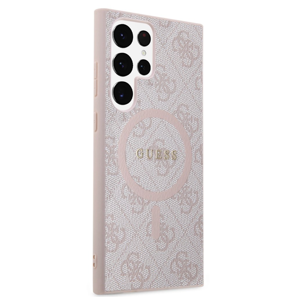 Guess PU Leather 4G Colored Ring MagSafe Zadní Kryt pro Samsung Galaxy S24 Ultra Pink