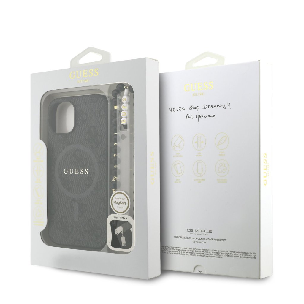 Guess PU Leather 4G Colored Ring Strap MagSafe Zadní Kryt pro iPhone 14 Black