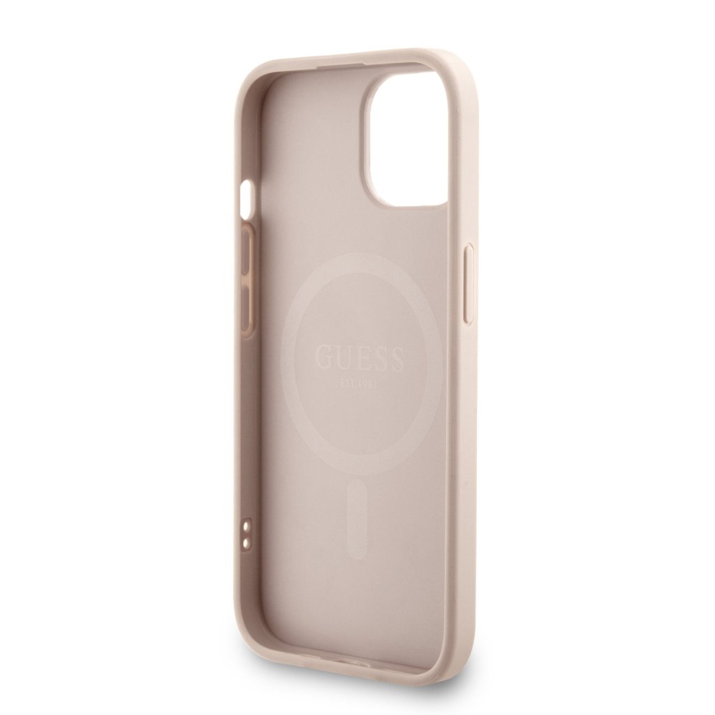 Guess PU Leather 4G Colored Ring Strap MagSafe Zadní Kryt pro iPhone 14 Pink