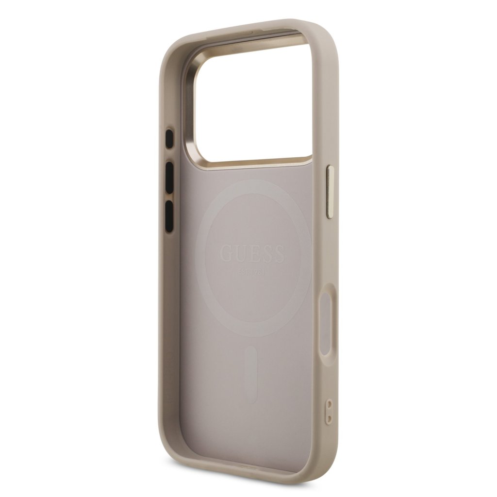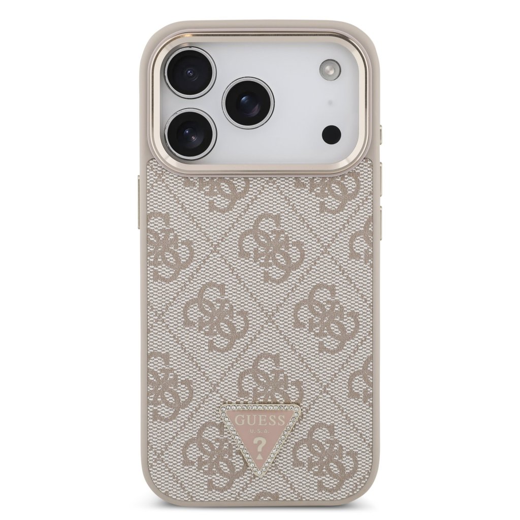 Guess PU Leather 4G Strass Triangle Logo Gold Frame MagSafe Zadní Kryt pro iPhone 17 Pro Pink