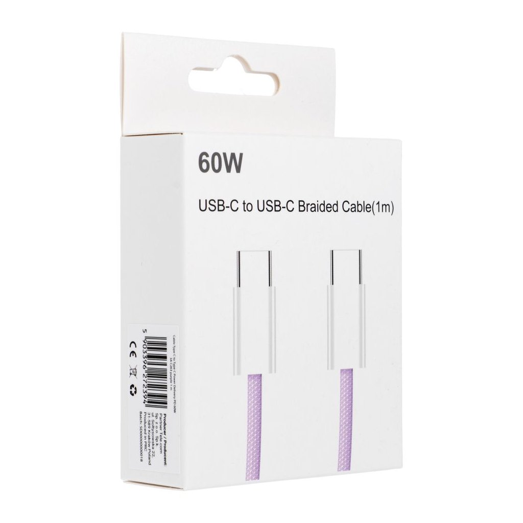 Kabel typ C na typ C PD QC3.0 3A 60W C263 1 m fialový