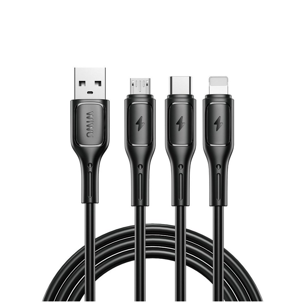 Kabel USB serie Starlink Wi-C045E 3w1 USB A na USB C, Micro USB, Lightning 3,1A 1m - černý