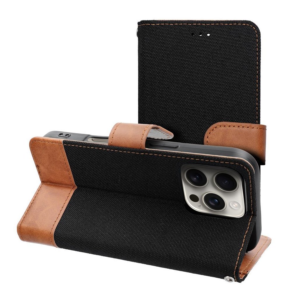 Pouzdro na iPhone 17 Pro Jeans Book černé – peněženkové, kapsy, TPU