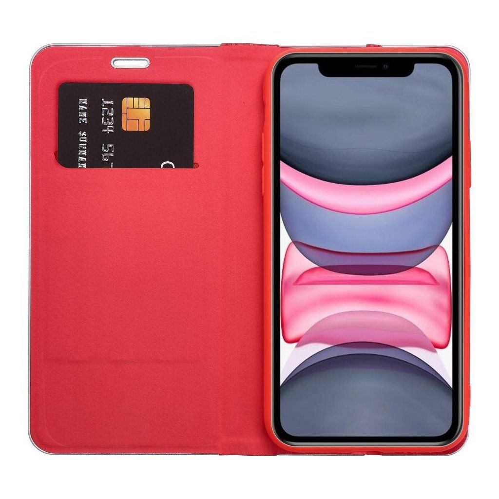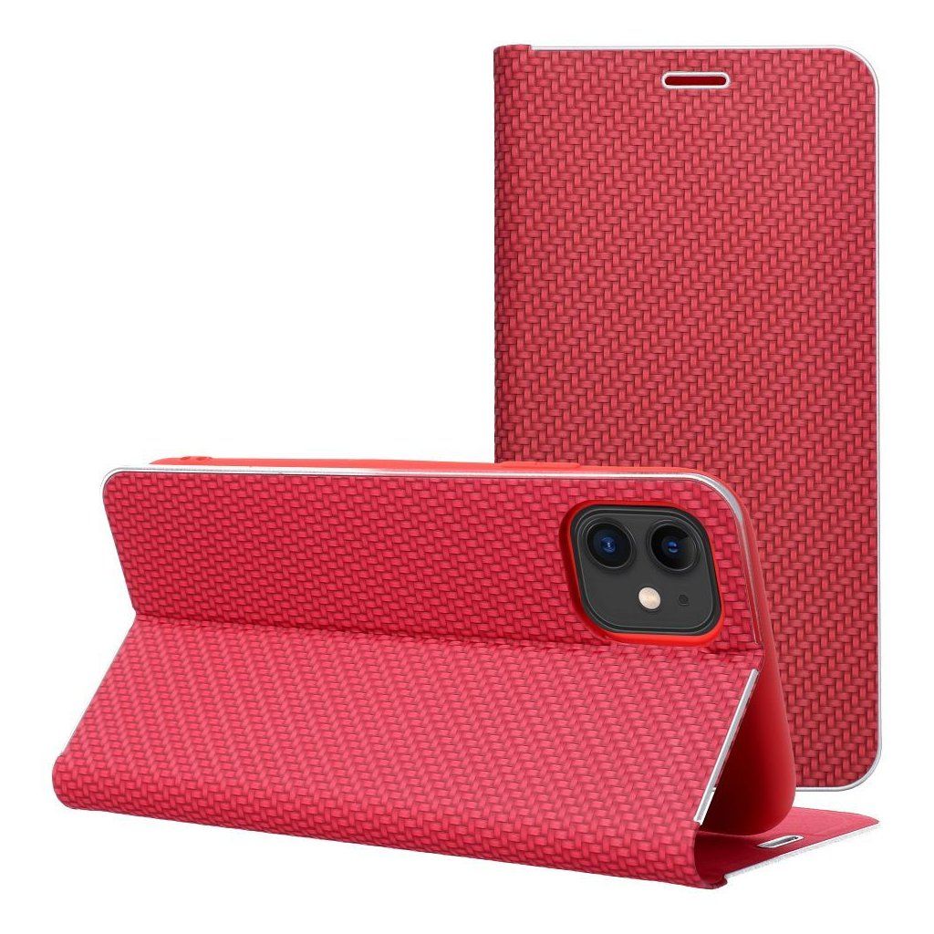 Pouzdro na iPhone 17 červené – elegantní s kovovou rámovou ochranou, magnet, kapsa