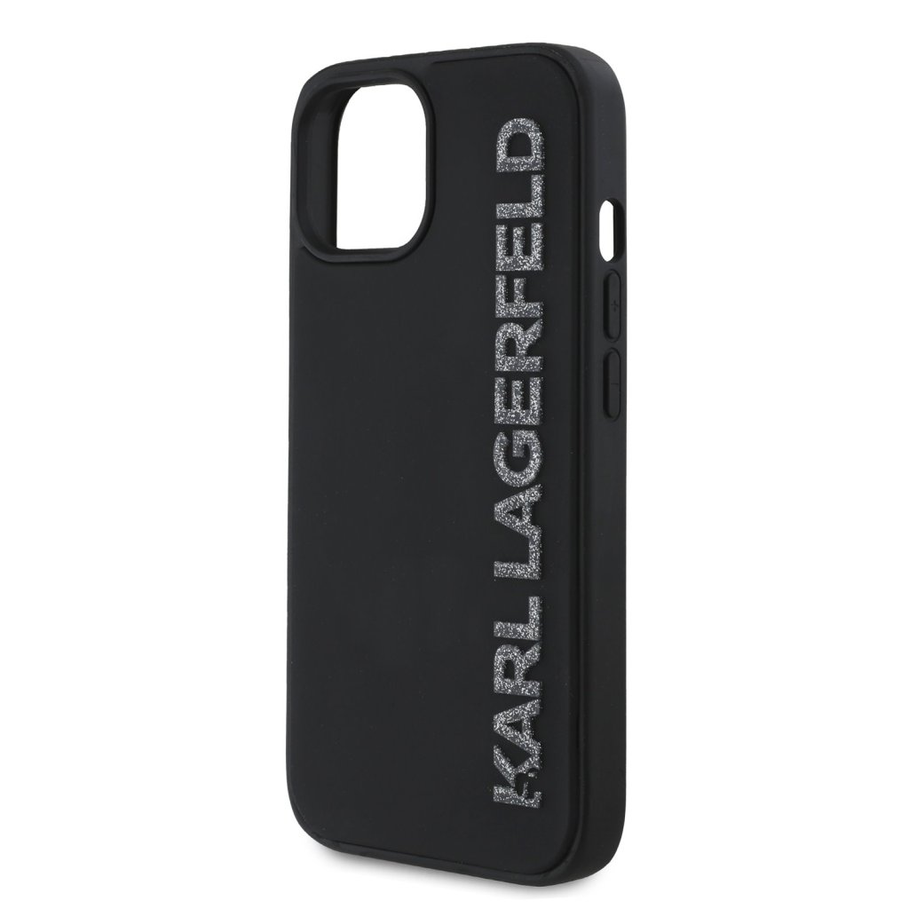 Karl Lagerfeld 3D Rubber Glitter Logo Zadní Kryt pro iPhone 13 Black