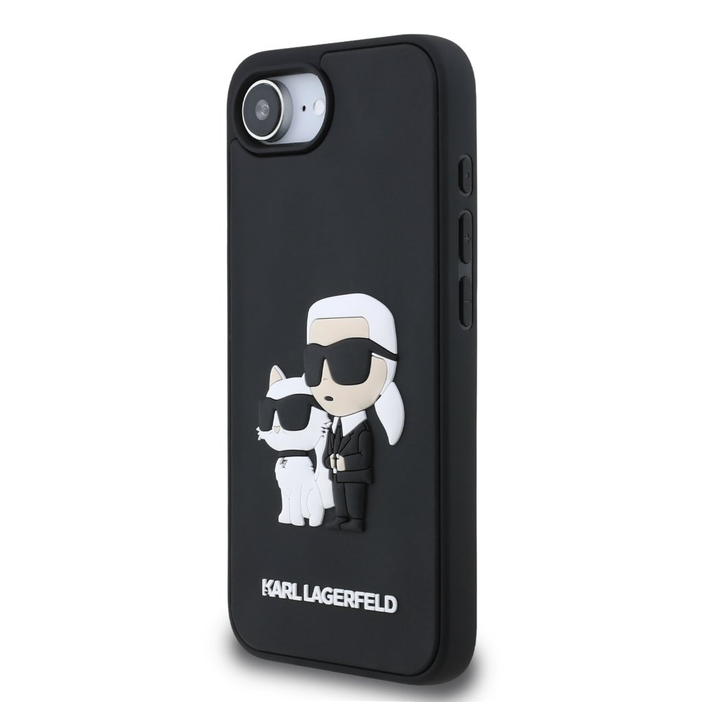 Karl Lagerfeld 3D Rubber Karl and Choupette Zadní Kryt pro iPhone 16e Black
