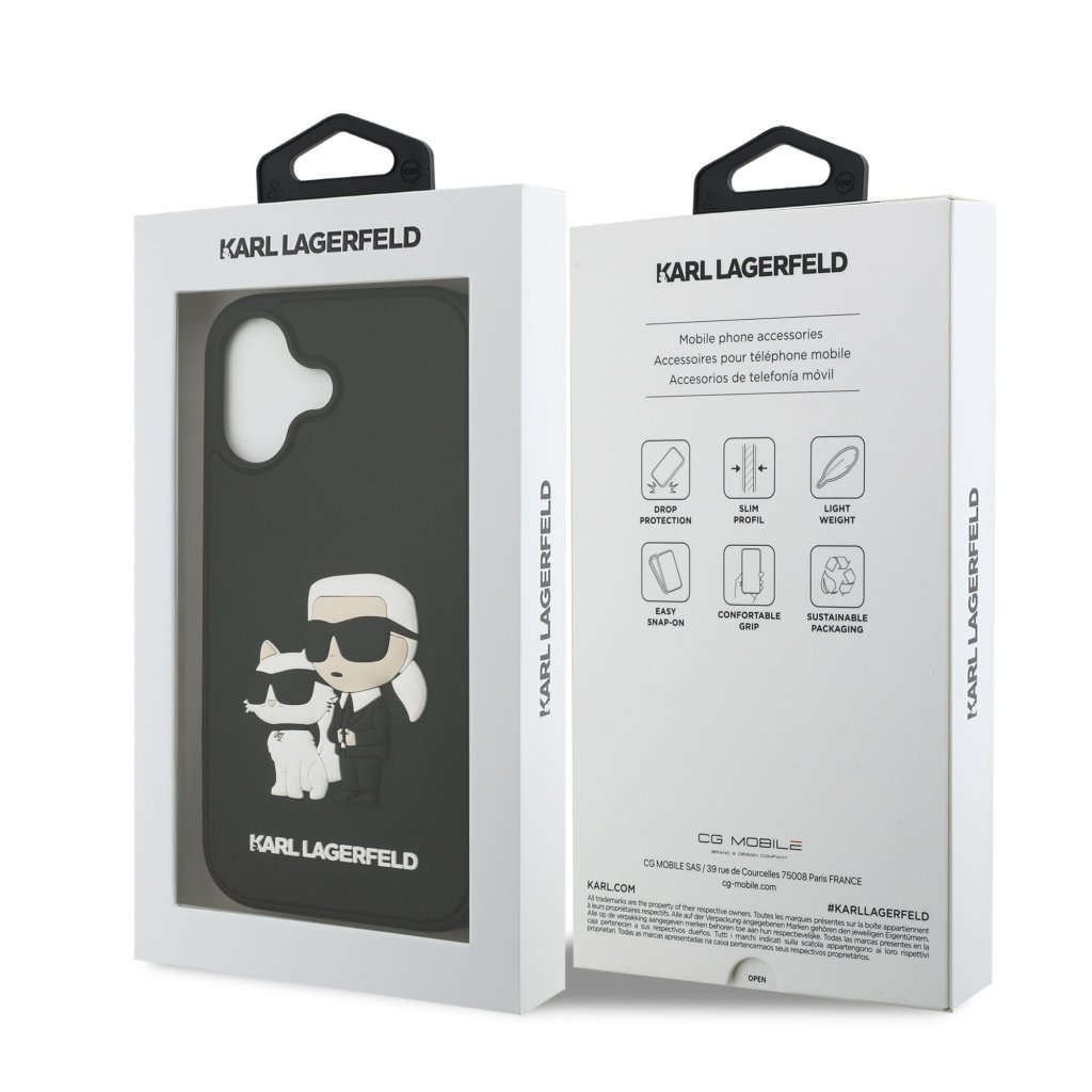 Karl Lagerfeld 3D Rubber Karl and Choupette Zadní Kryt pro iPhone 17 Black