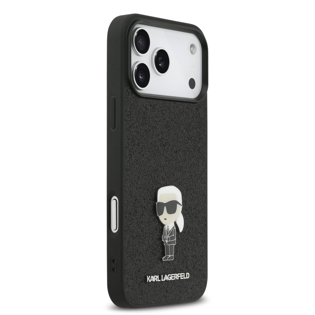 Karl Lagerfeld Fixed Glitter Metal Ikonik Zadní Kryt pro iPhone 17 Pro Max Black