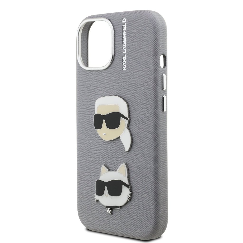 Karl Lagerfeld Grained PU K&CH Heads Zadní Kryt pro iPhone 15 Grey