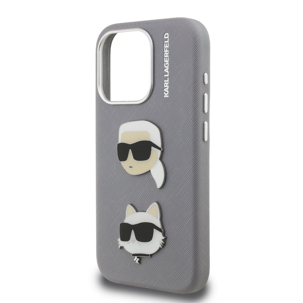 Karl Lagerfeld Grained PU K&CH Heads Zadní Kryt pro iPhone 15 Pro Max Grey